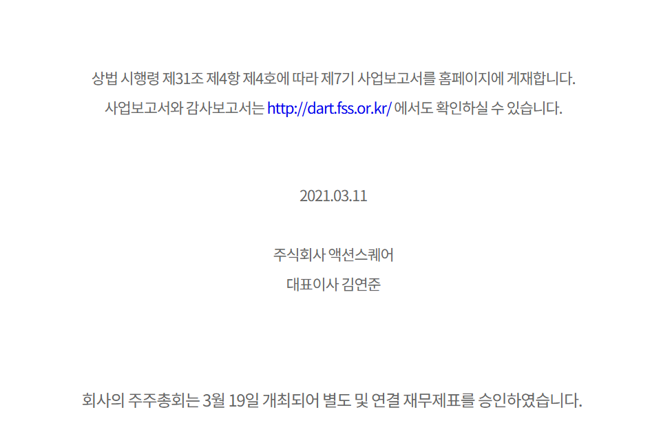 • (주)액션스퀘어 제8기 결산공고(2022.03.25)